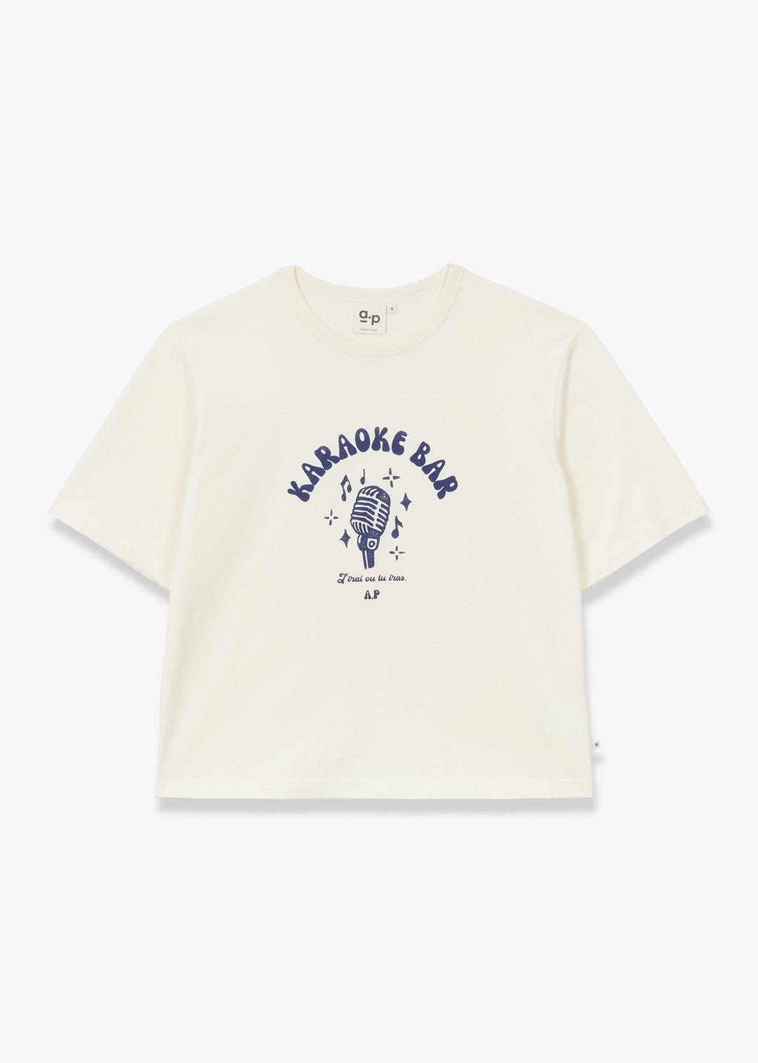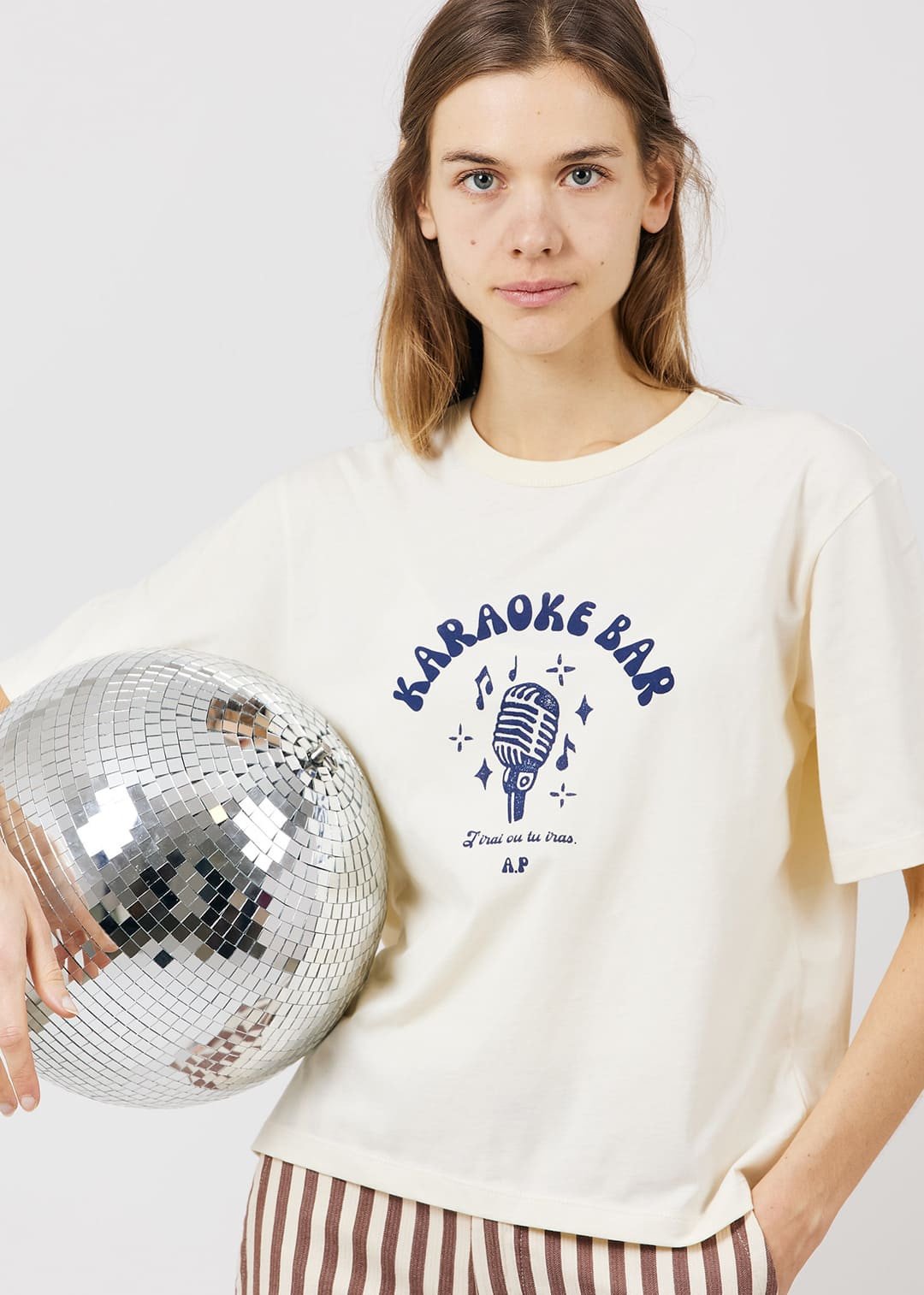 Ariane measures 1m78 and carries the T-shirt in size S.