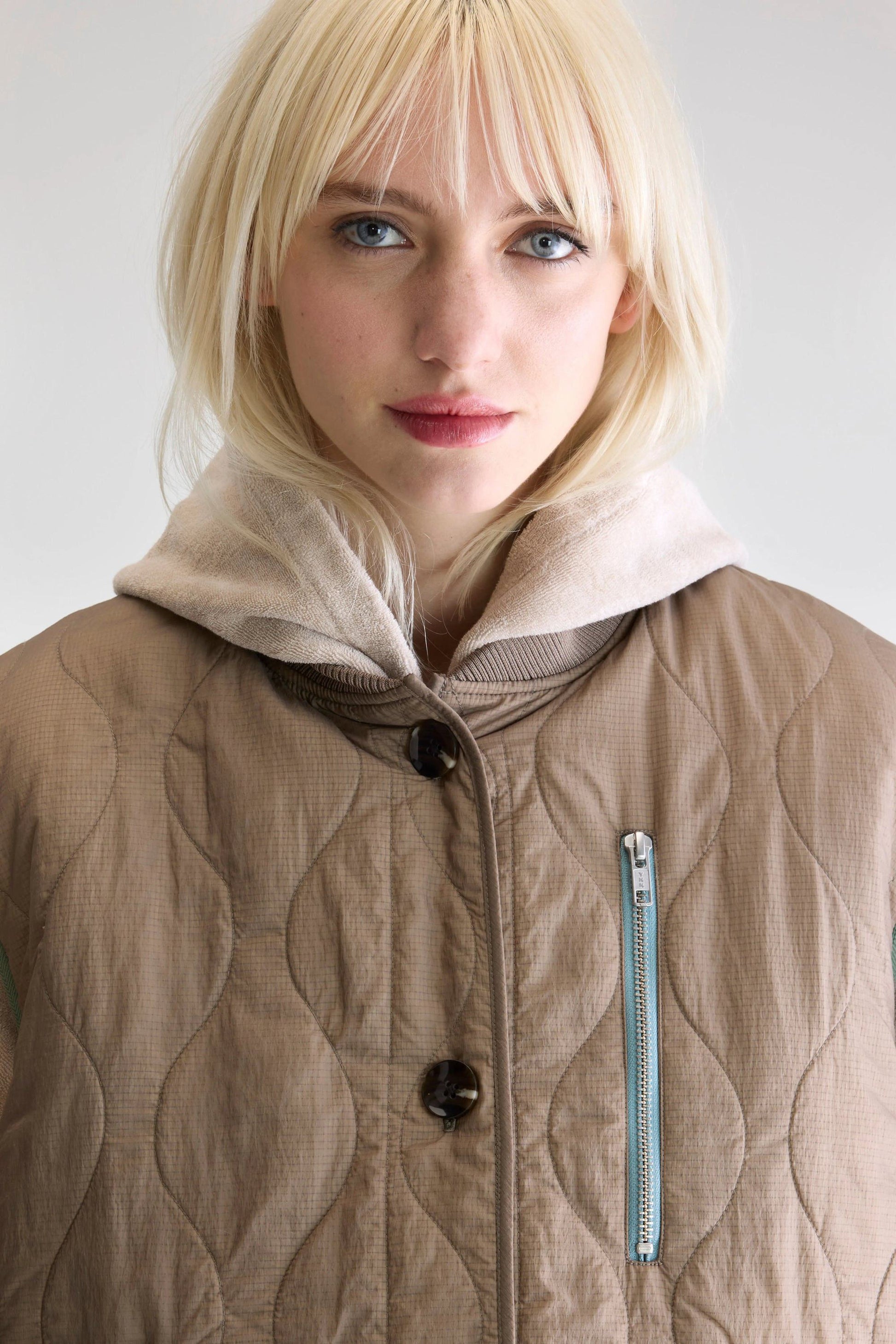 Ribbed taupe bomber-style collar