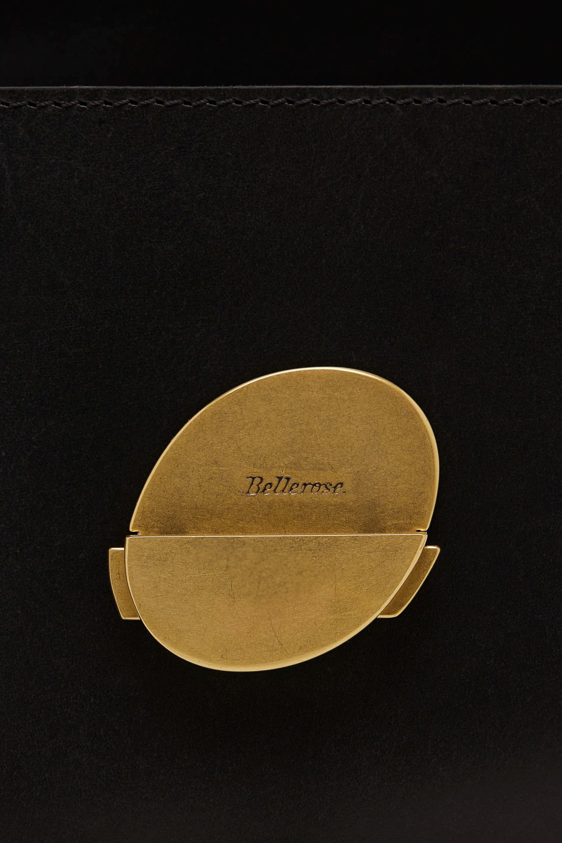 Large front flap with antique brass snap closure