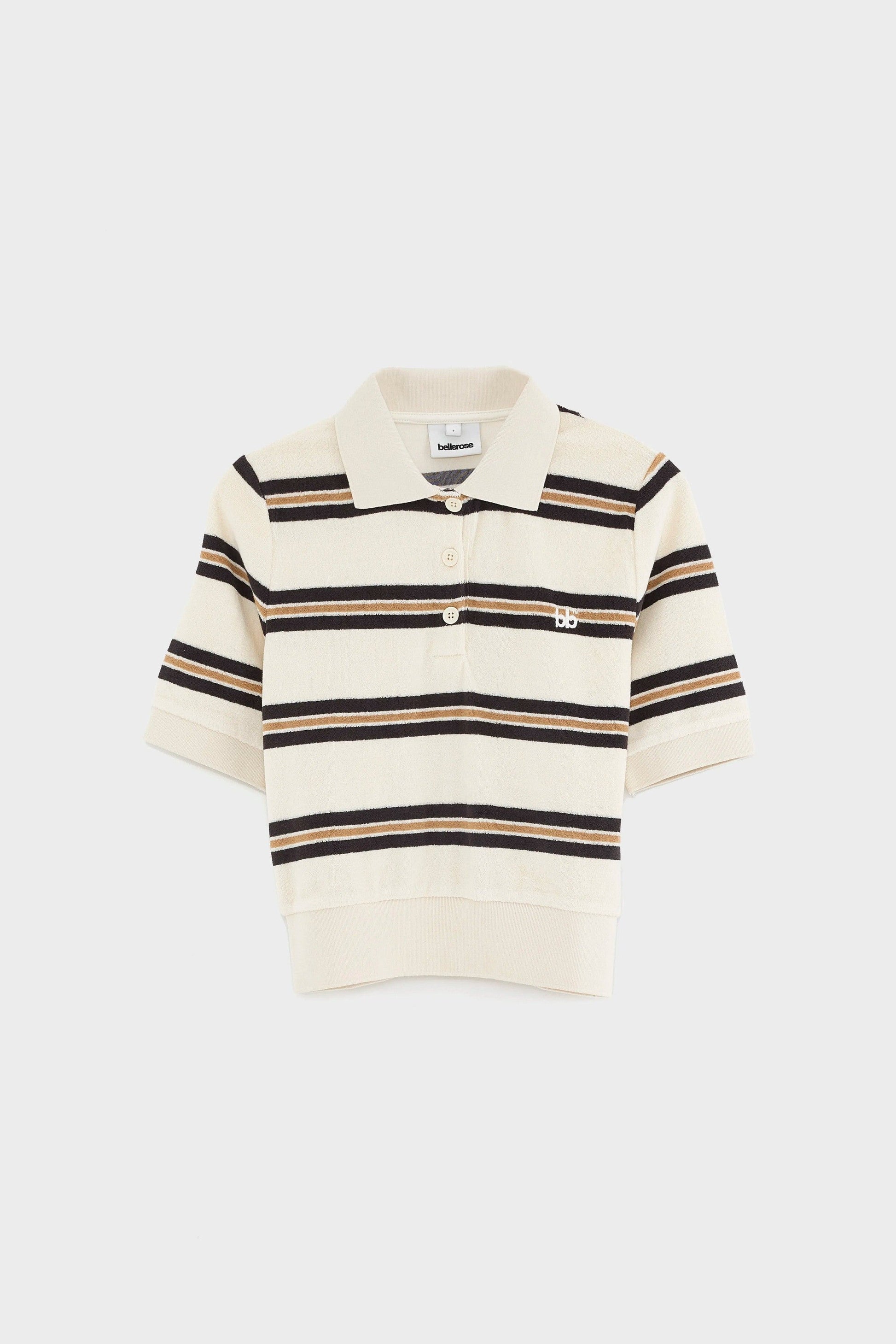 Picture yourself enveloped in the plush loops of terry, the burgundy base catching the light while yellow and white stripes add a quiet pop. The open polo neckline and regular-fit cut create a balanced, relaxed look that moves with you—perfect for coffee runs, casual Fridays, or weekend getaways. The horizontal stripe texture adds depth and tactility, while the tonal bb logo embroidery at the chest provides a refined, understated signature of craftsmanship.