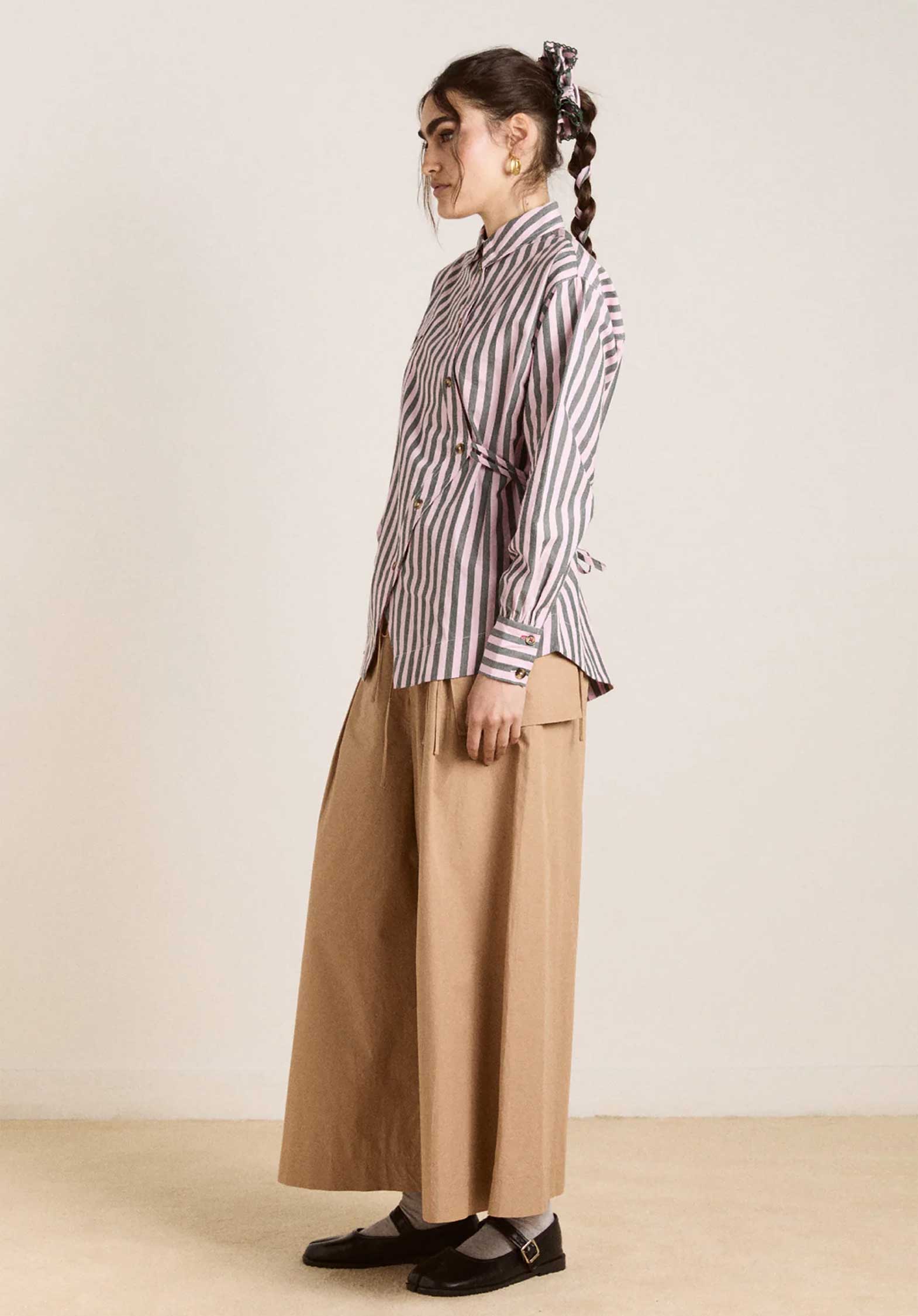 Asymmetric button placket Double tie on the back