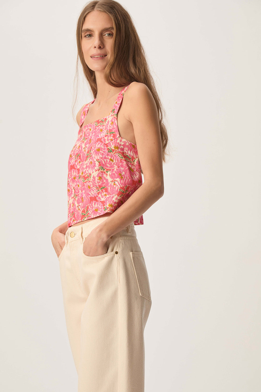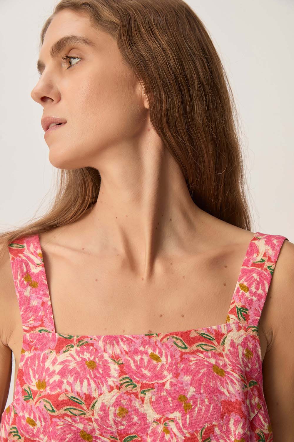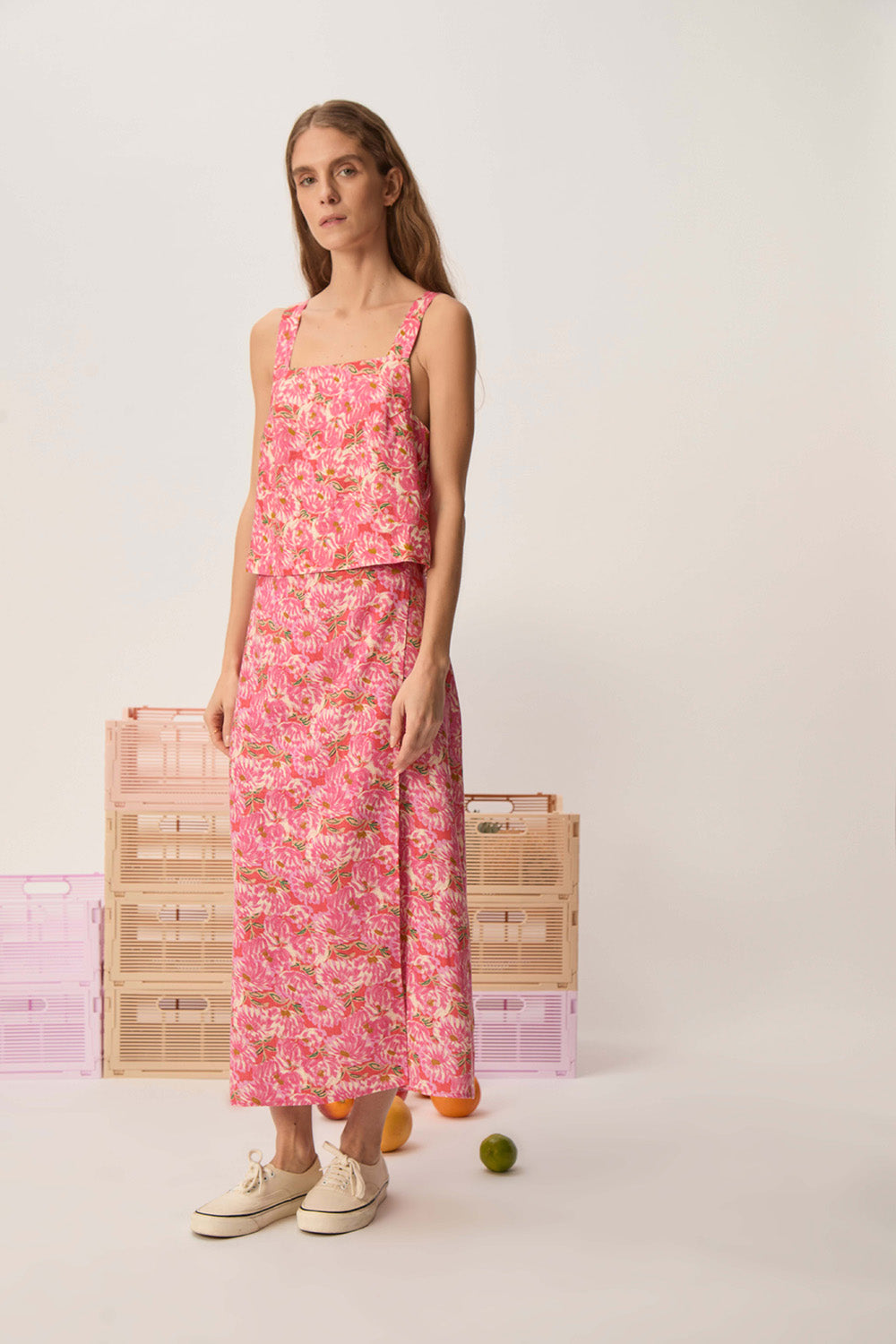 Combining a beautiful linen weave with supple viscose, the Siba top boasts a cropped cut and a lush print for summer. Elasticated at the back with darts at the bust to showcase the neckline, it can be teamed with the matching skirt to create an outfit for a special occasion.
