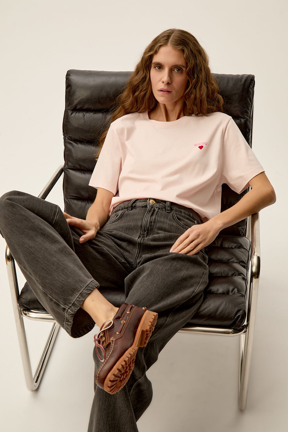 A wardrobe favourite to wear all year round, the Gazoline short-sleeved T-shirt moves away from its minimalist look with a bold heart and sweet message for this new season.