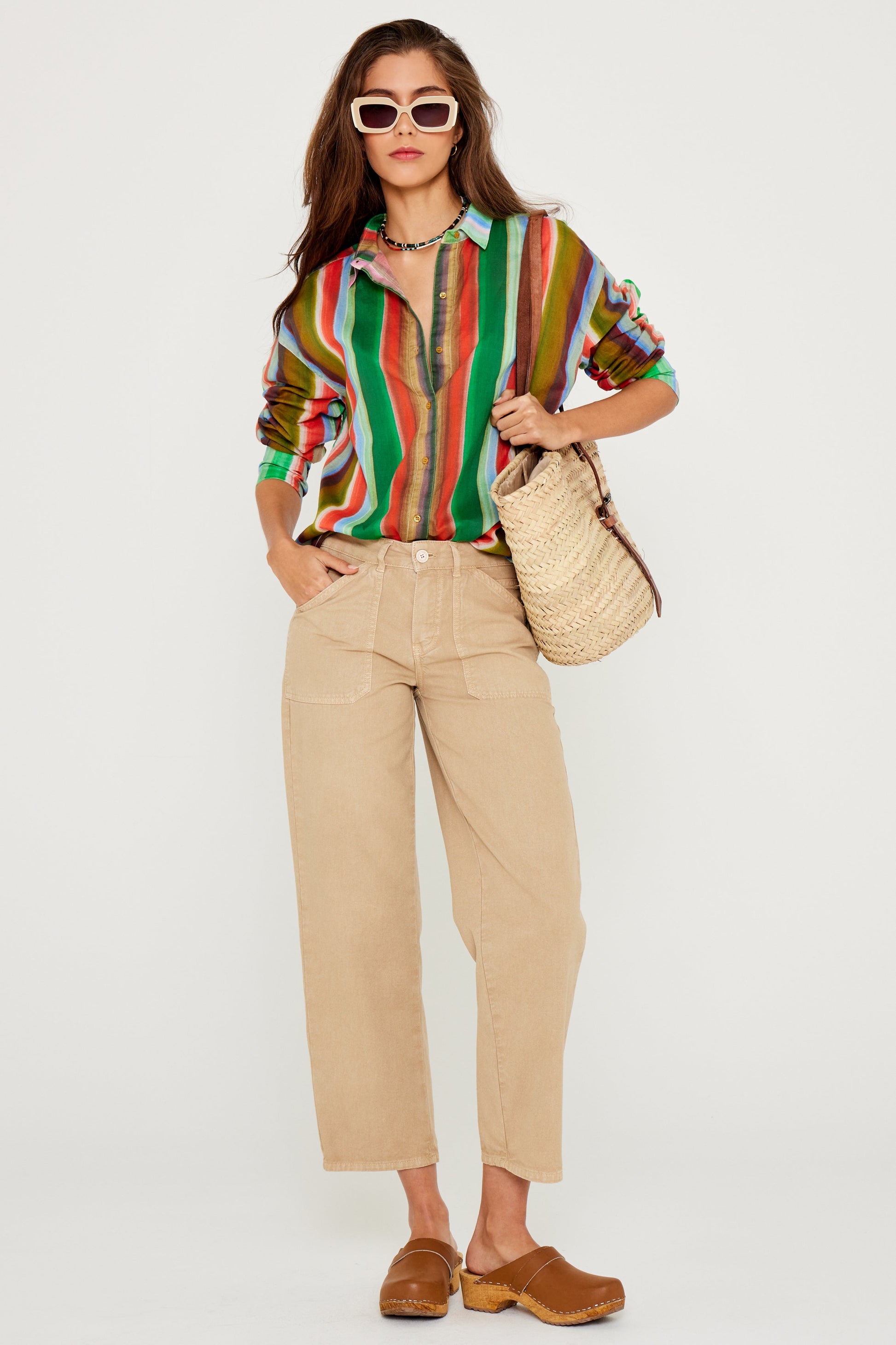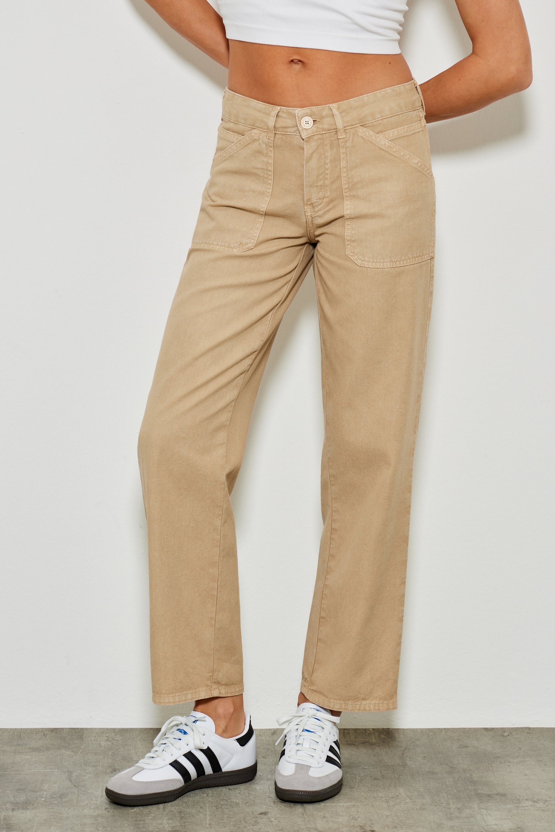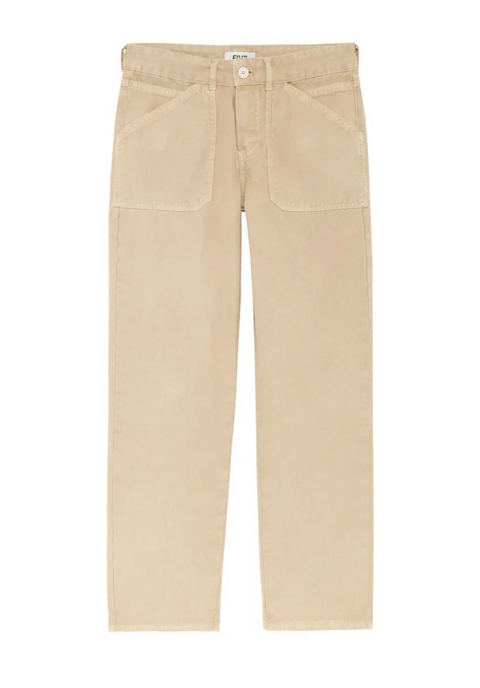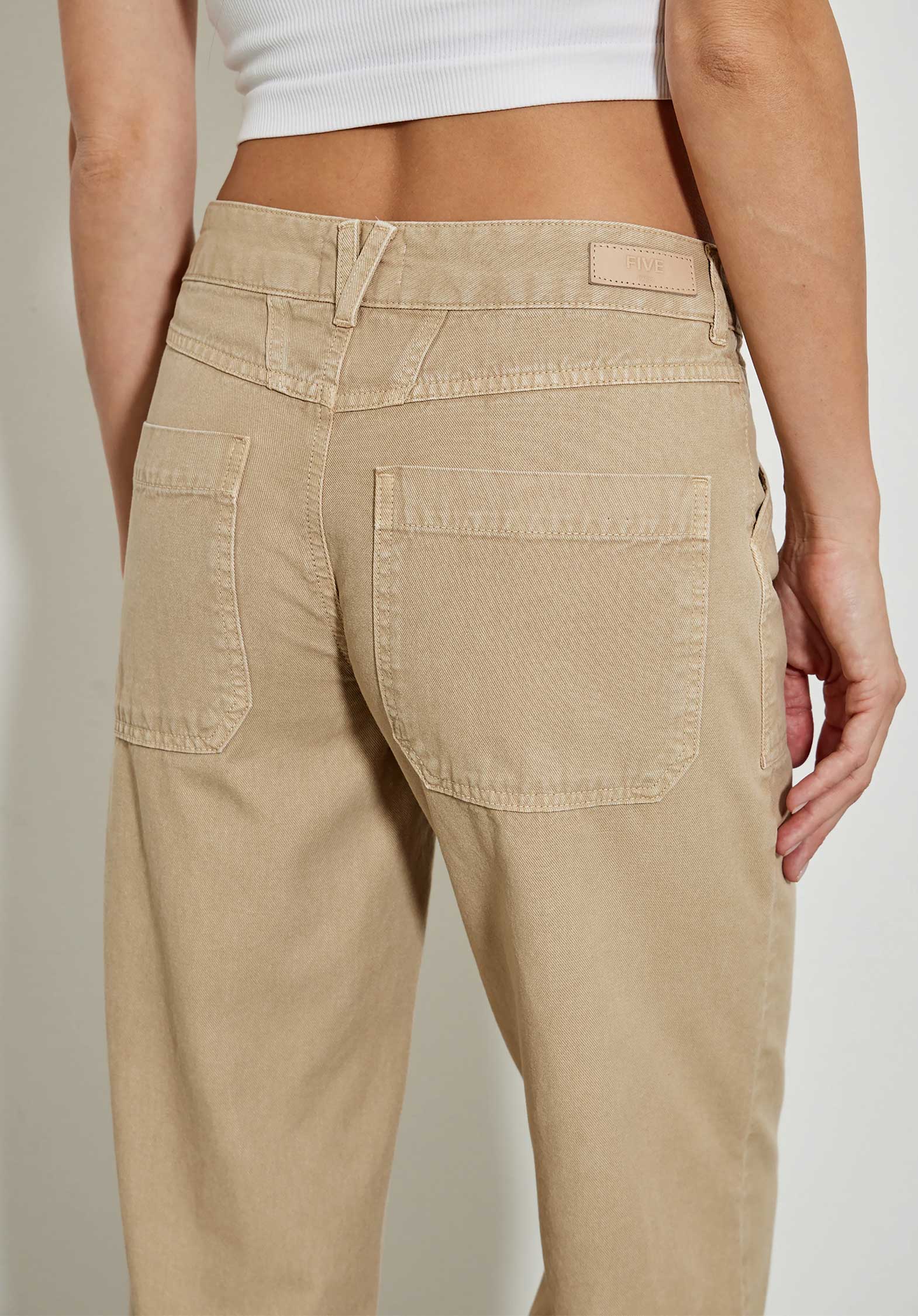 Wide pants Standard size Closure with a FIVE brand button and a hidden zip under the flap Belt with loops Patch pockets on the front Label on the back with the FIVE logo Inseam length: 72cm Our model is wearing a size 27