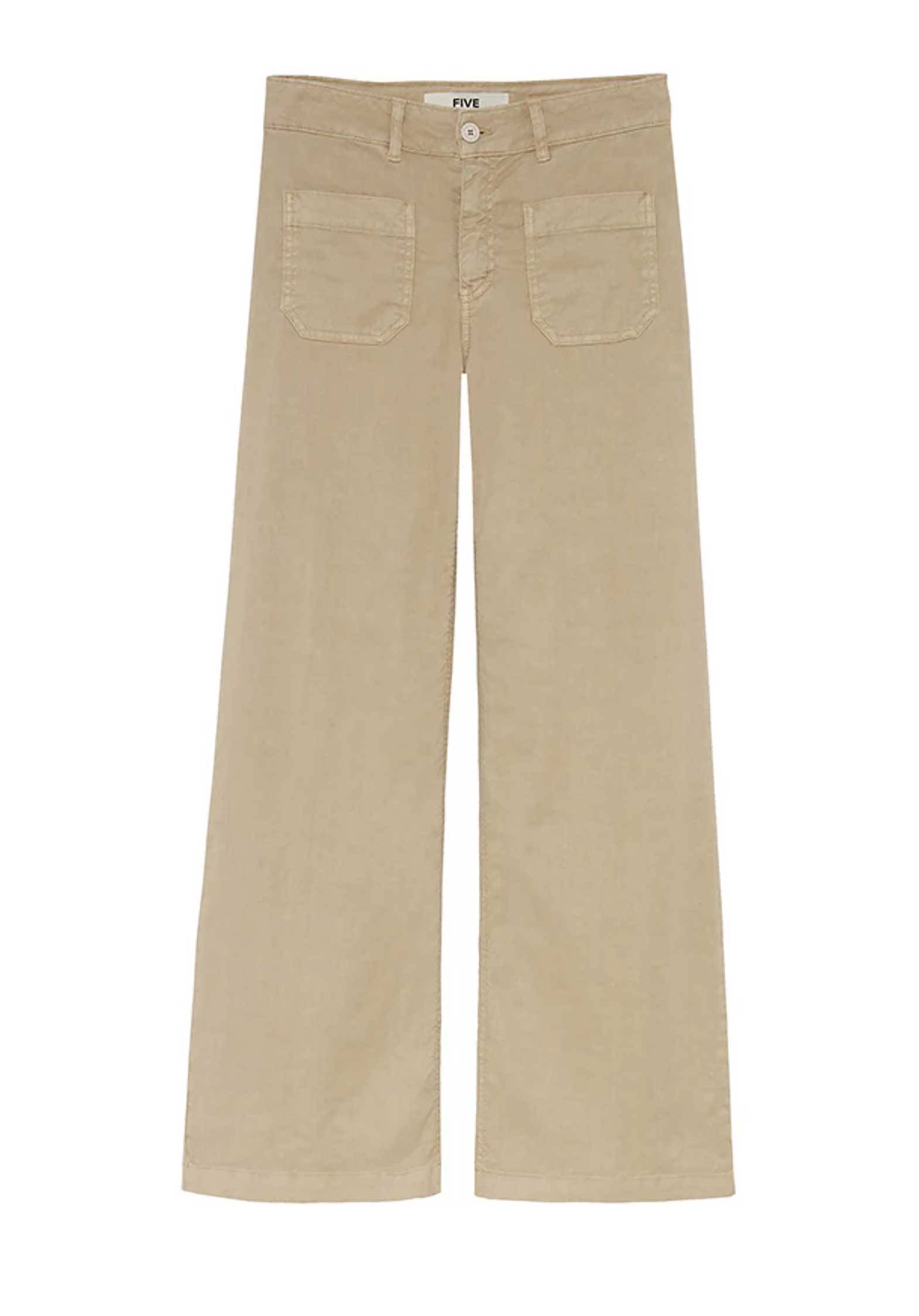 Standard wide size pants Closed with a Five brand button and a zip hidden under the belt flap with passers -by two plated pockets between legs: 72cm Our mannequin carries the size 27.