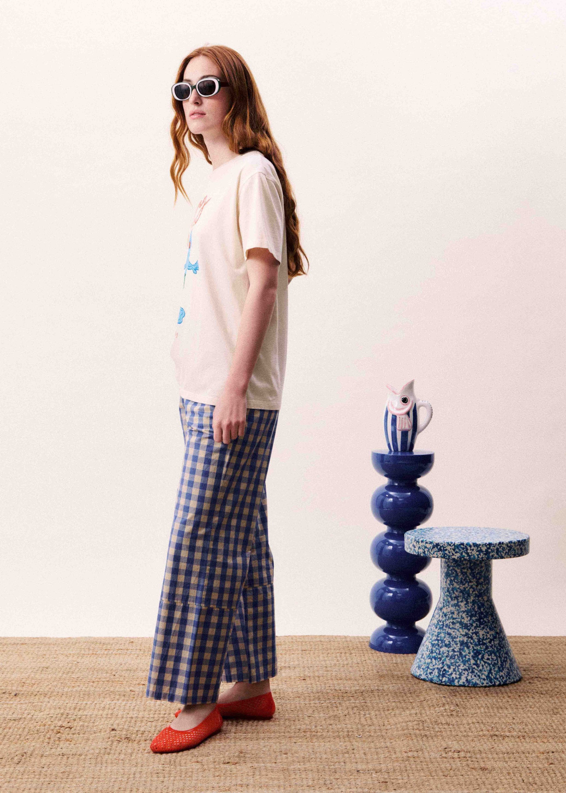 Cotton t-shirt with colorful illustration Melting stress away • Straight-cut, short-sleeved T-shirt • Classic crew neck • Graphic print with blue character and orange text