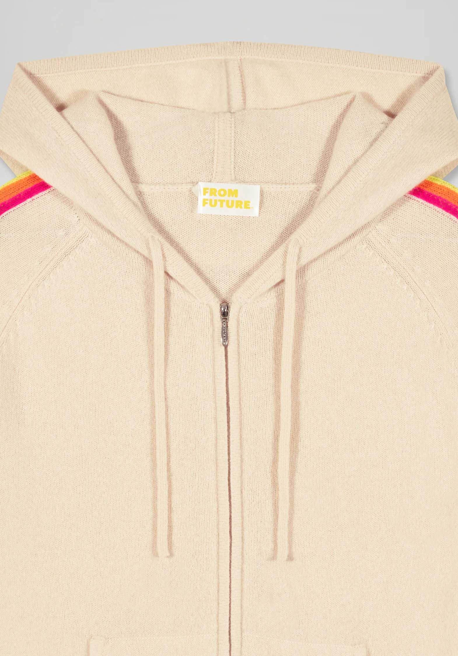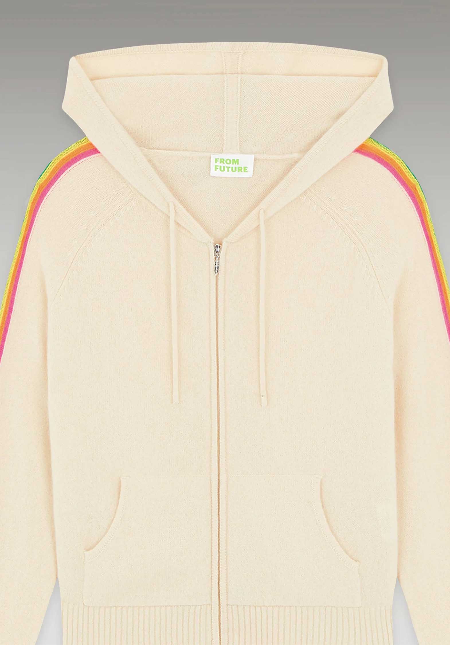 An iconic piece of the From Future wardrobe, this cropped hoodie features multi-colored stripes along the sleeves to bring out your seasonal silhouette.Made from soft and lightweight cashmere, it features a drawstring hood, a zip fastening and a front pocket.- Short hoodie sweater in certified lightweight cashmere