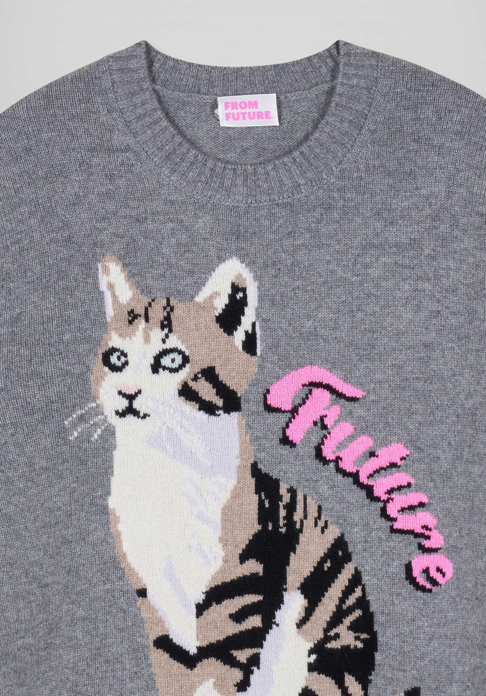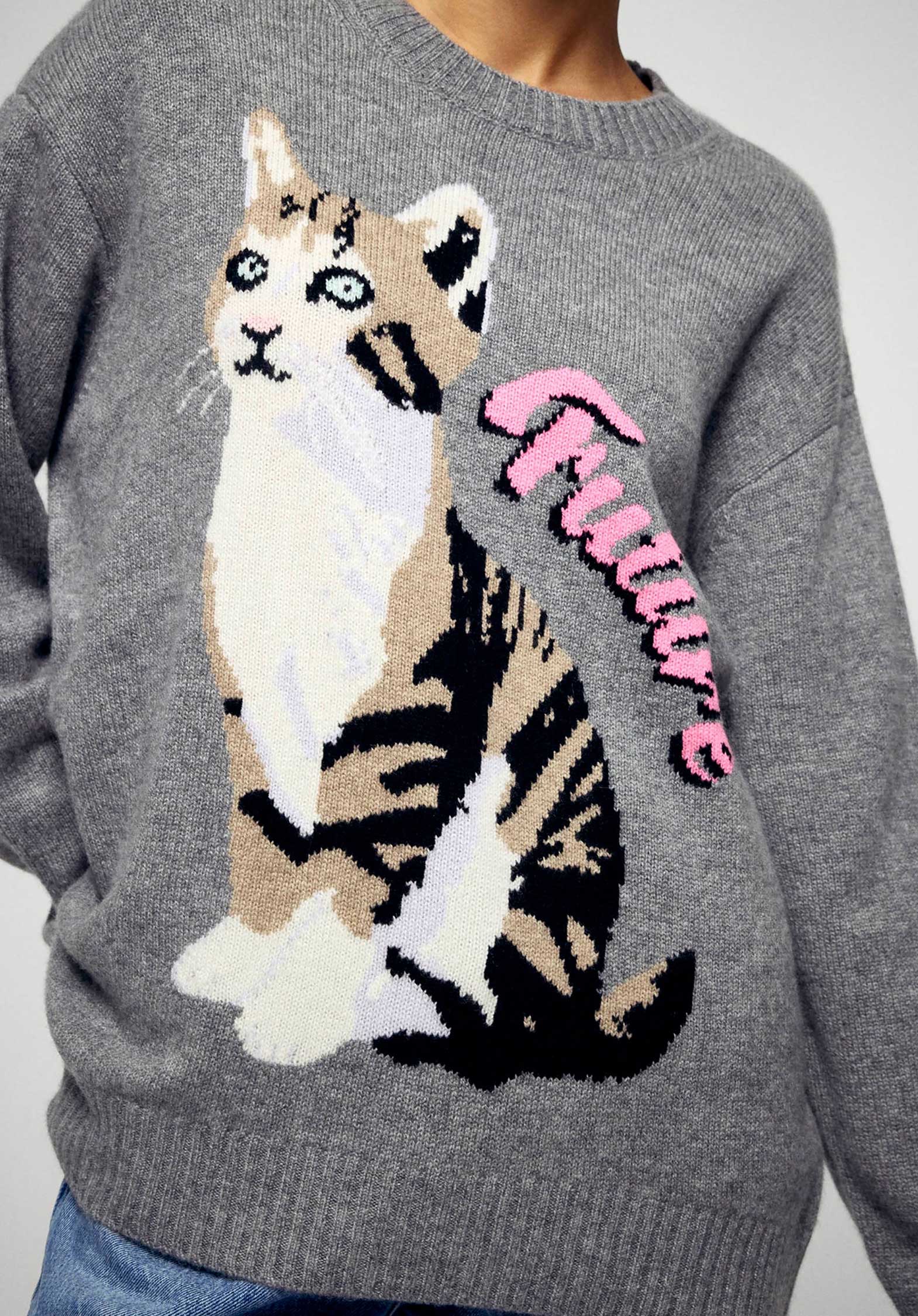 - Women's GCS certified 4-thread cashmere sweater - Future Cat pattern in intersia - Round neck - Long sleeves - Regular fit - The Good Cashmere Standard (GCS) is an independent standard for more sustainable and responsible cashmere.It aims to improve the well-being of cashmere goats, working conditions