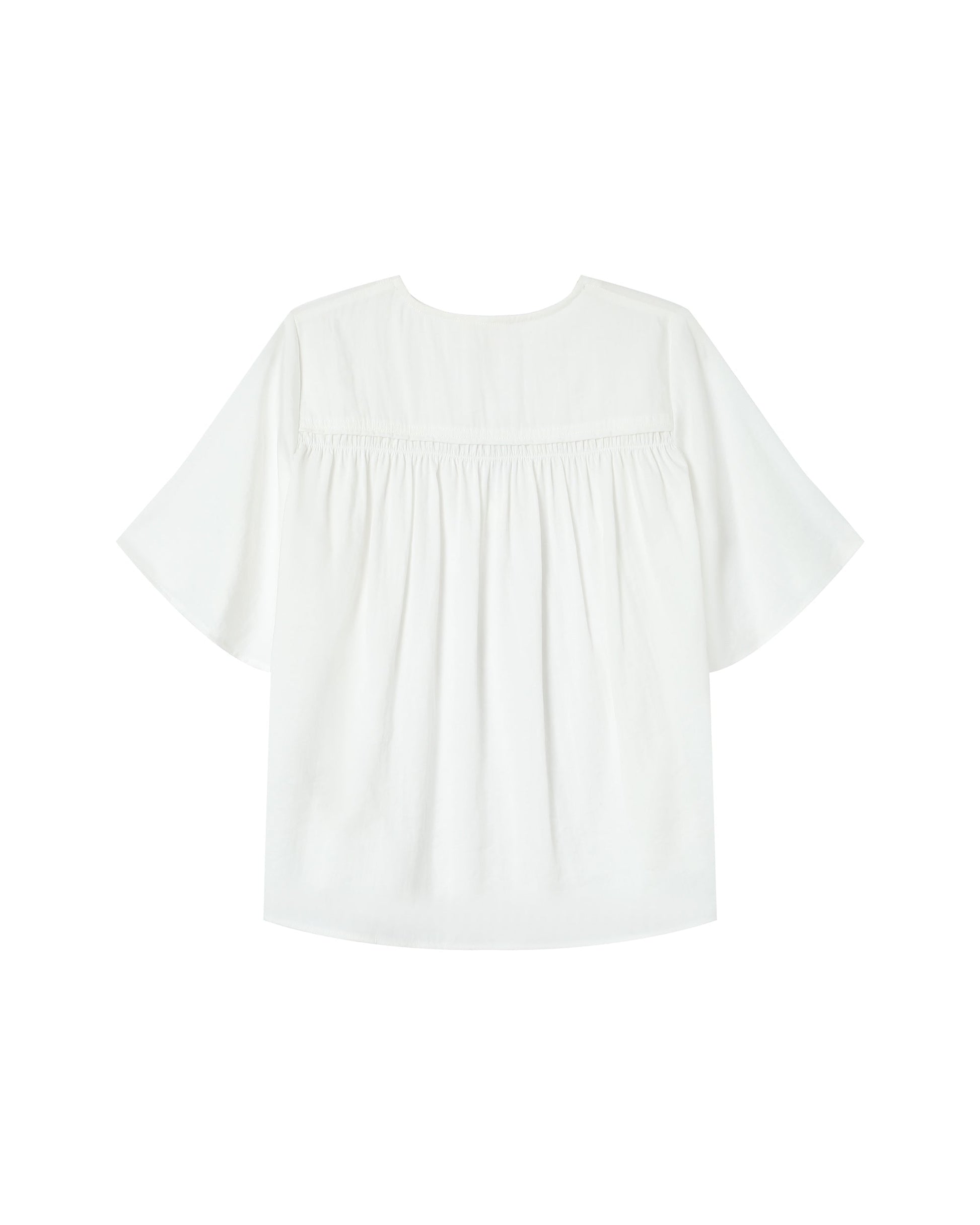 The Top with short sleeves Seagal is a simple and elegant piece that is invited in the daily locker room. The details such as the butterfly sleeves and the fronts on the front make it a feminine and sophisticated room. The short sleeve top Seagal has a V -neck and a straight cut that highlights the female curves.