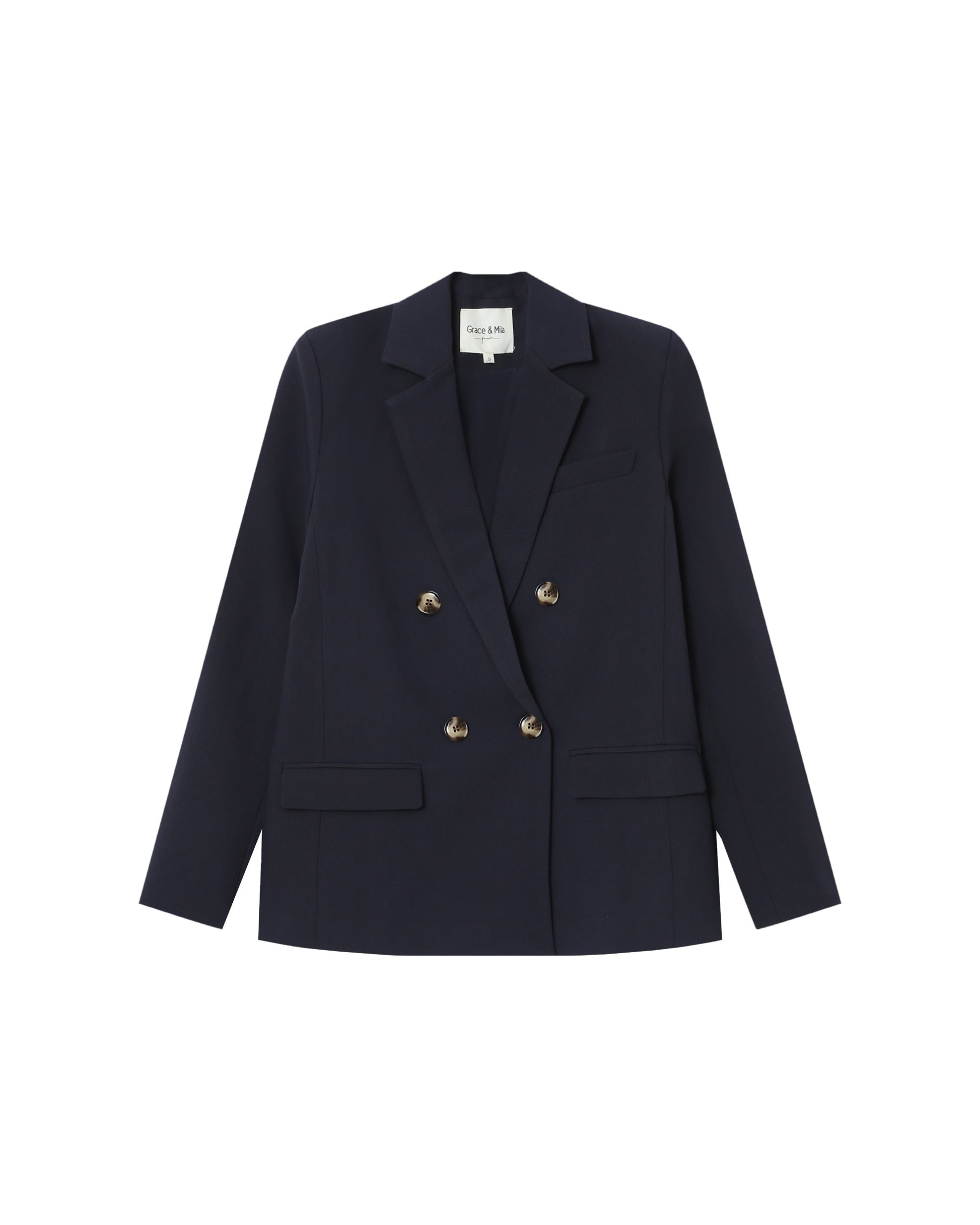 The elder tailor jacket is an assertive piece that is inspired by the male wardrobe.It adopts an elegant straight cut, underlined by a double buttoning cross closure and a notched reverse neck.The piped pockets with flap and the horn effect buttons of the long -elderly sleeve jacket add a touch of character.It is a structured and timeless model that draws a chic and modern silhouette.