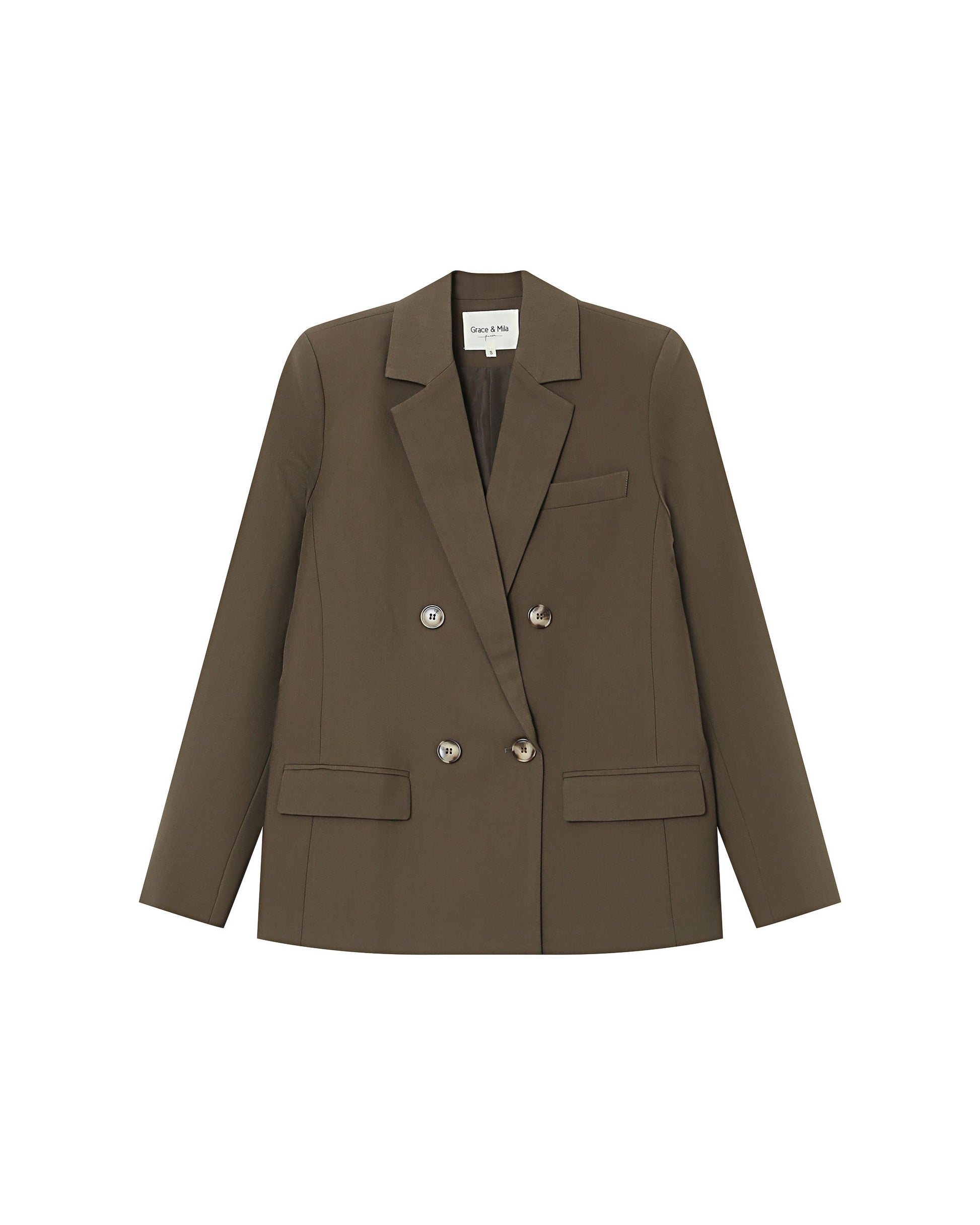 The elder tailor jacket is an assertive piece that is inspired by the male wardrobe.  It adopts an elegant straight cut, underlined by a double buttoning cross closure and a notched reverse neck.  The piped pockets with flap and the horn effect buttons of the long-elderly sleeve jacket add a touch of character.  It is a structured and timeless model that draws a chic and modern silhouette.