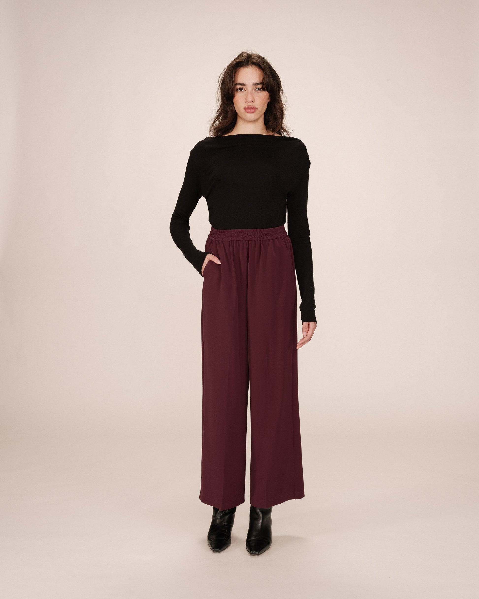 NOBLESSE trousers are wide trousers with an elasticated waist and create. Fluid and light, the NOBLESSE casual trousers is a comfortable piece to wear. This basic of the féminine wardrobe is essential to adopt a casual look.