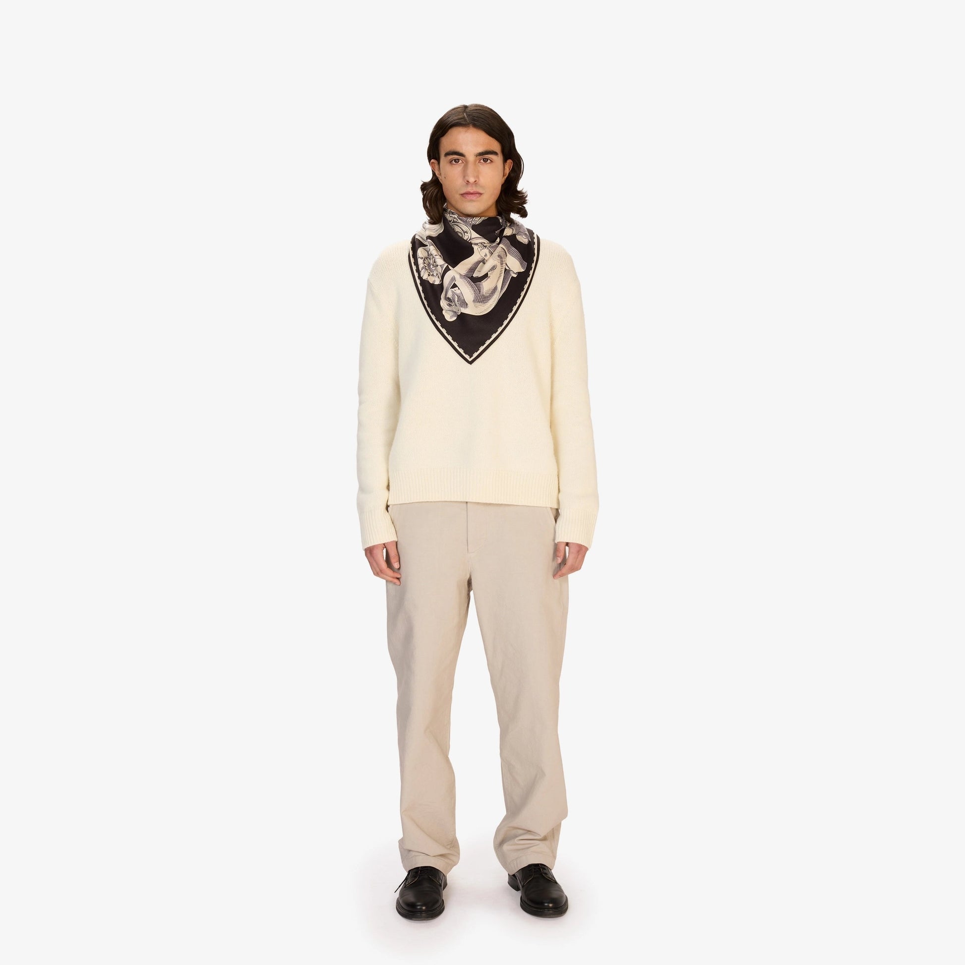 A staple at Inoui Editions for several seasons now, the square scarf is now a staple in our collections, and comes in a variety of sizes depending on the design. It can be put to many different uses, bringing art and clothing together and becoming a playful and versatile part of any outfit. The 130x130 square scarf can be worn around the neck or tied into a skirt or wrap-around top.