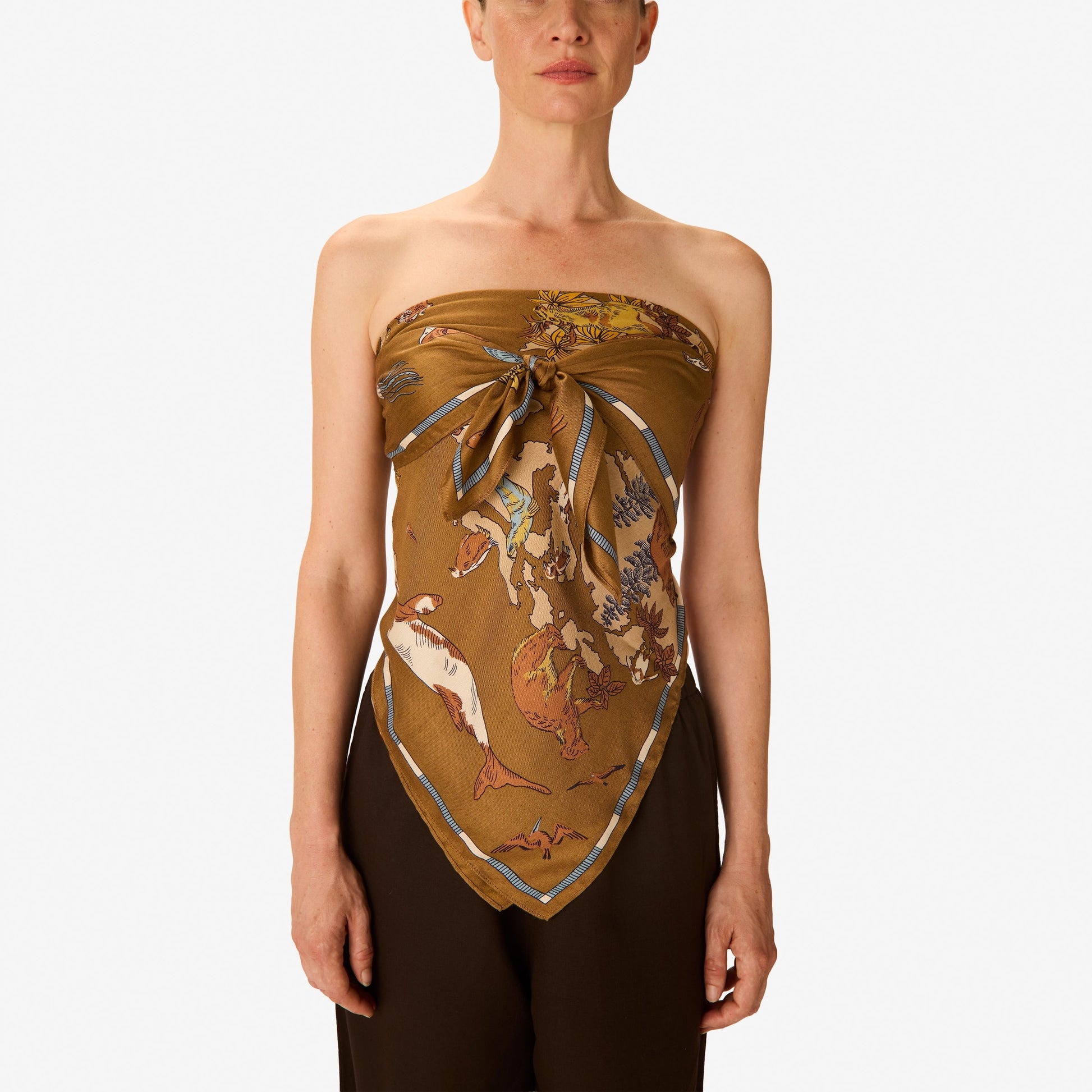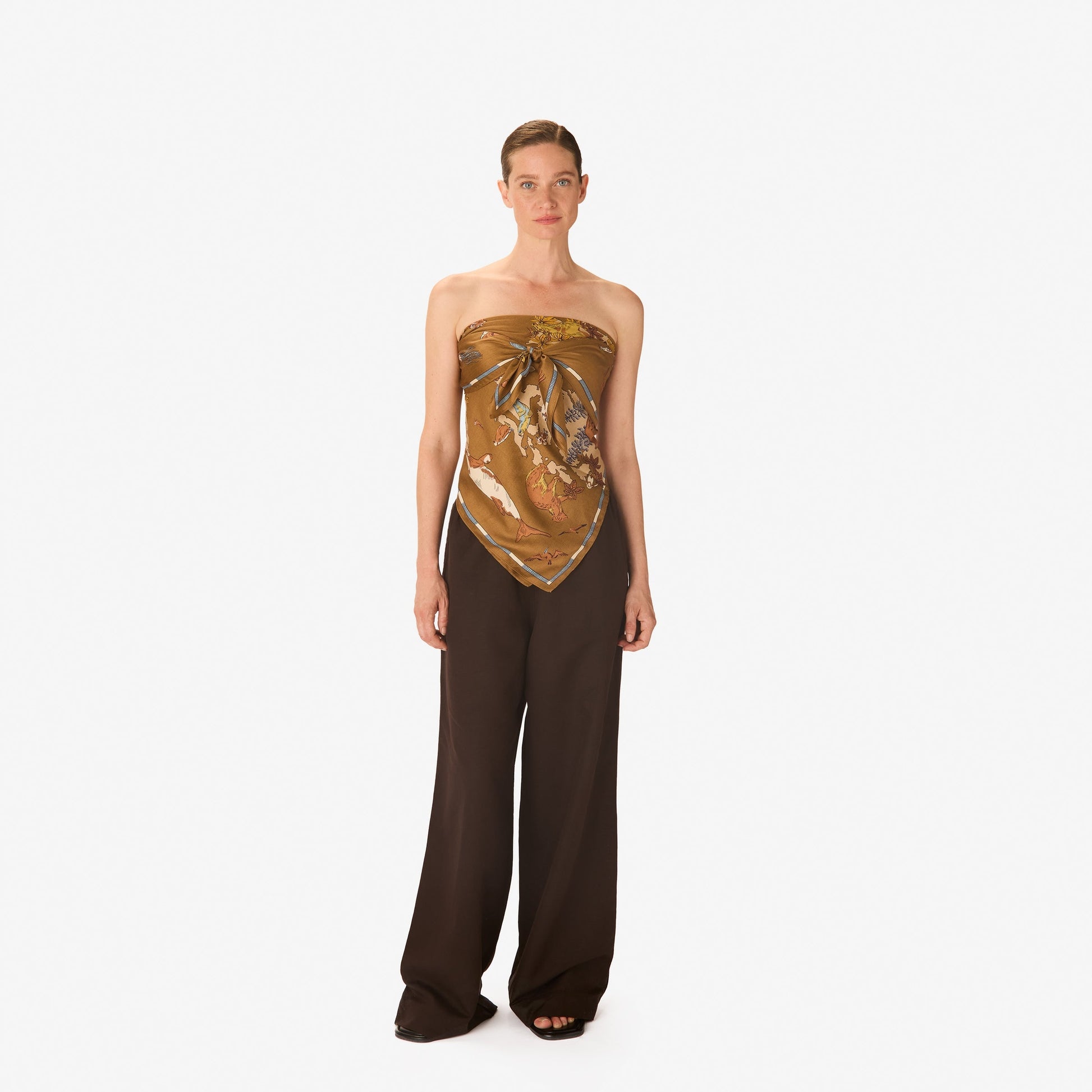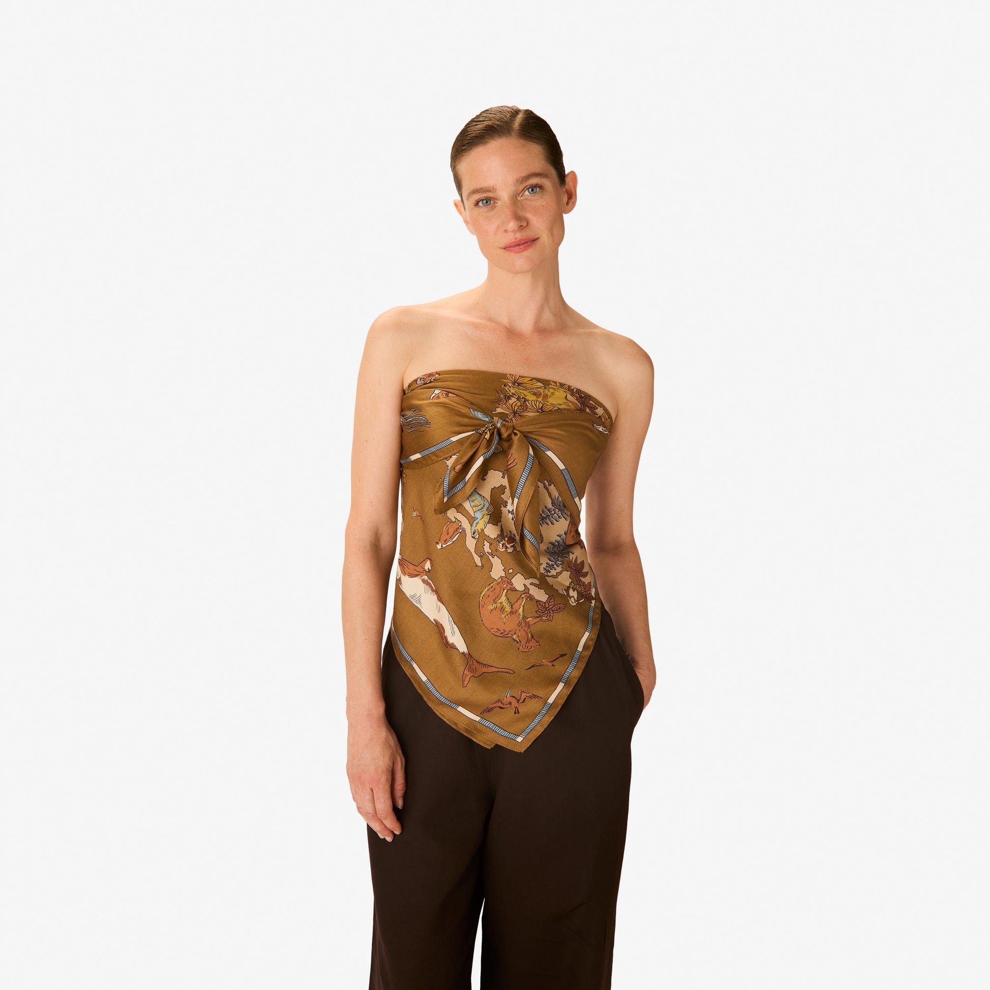 Wear the Atlas beige square scarf, an elegant sandy shade that evokes the softness of natural materials.