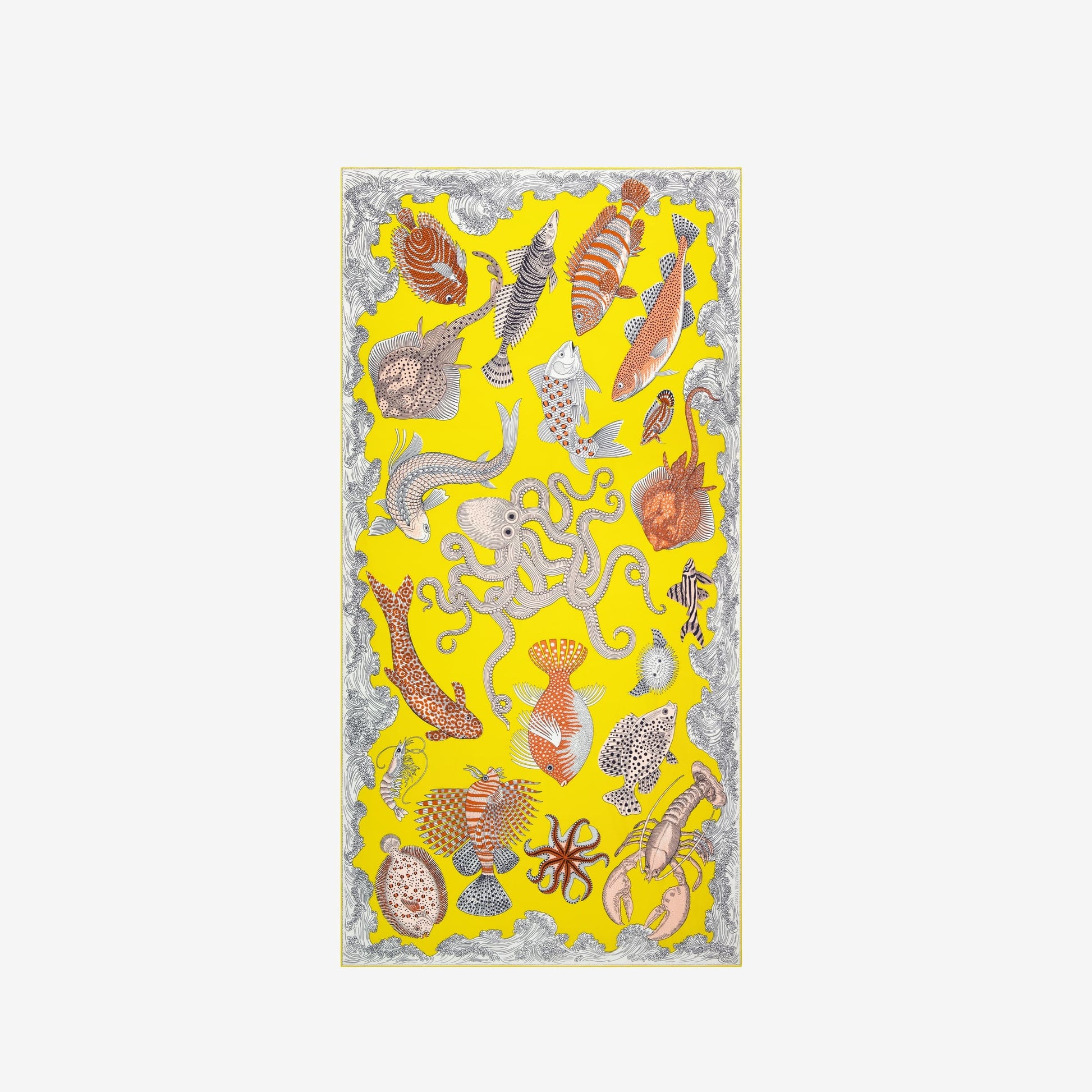 This line of screen-printed scarves comes in several sizes, depending on the design. The airy material allows for great color finesse.