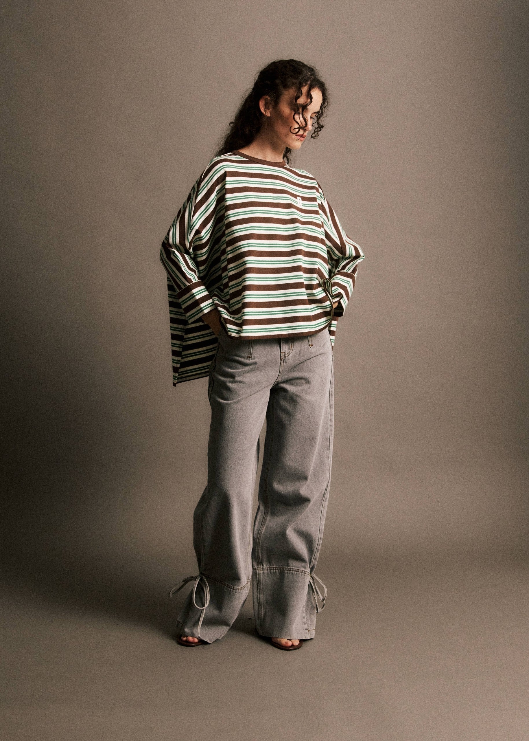 Long-sleeved striped top in an oversized cut for a contemporary casual style • Long-sleeved oversized cut top • Contrasting multi-colored horizontal stripes • Crew neckline • Embroidered logo on the front • Loose, relaxed fit