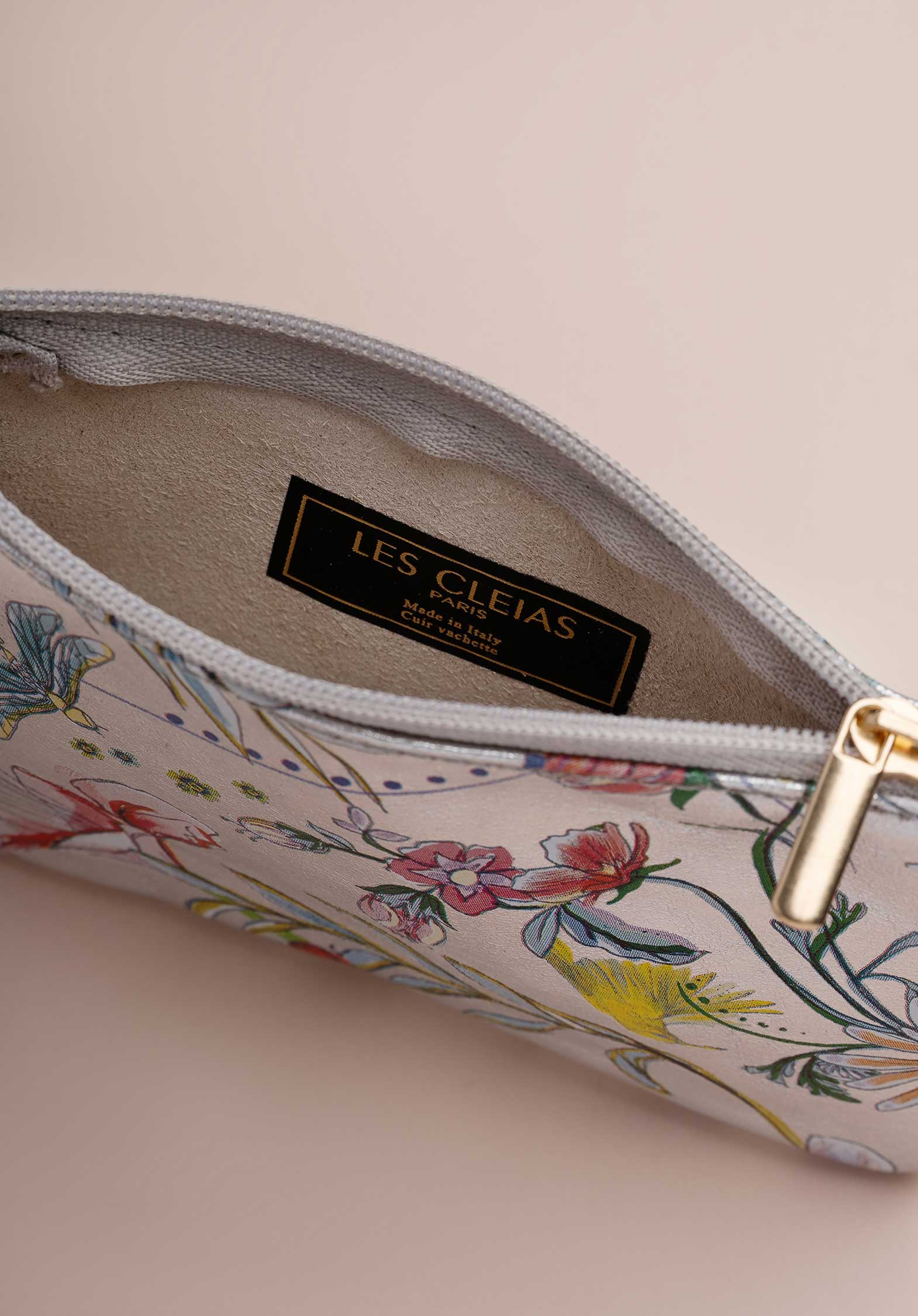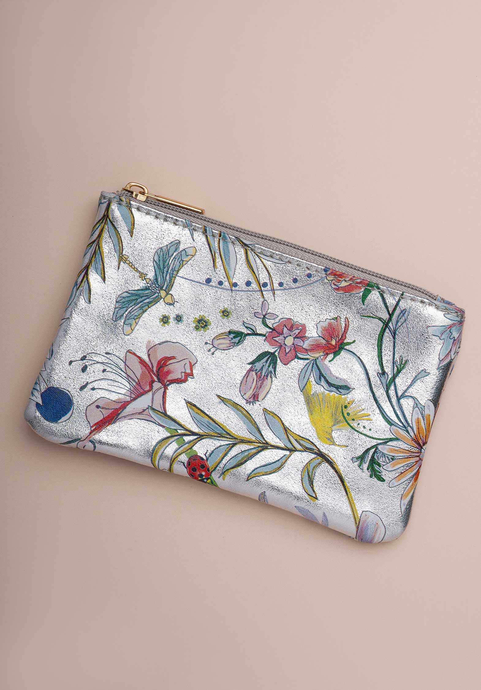 Pouch Lcl43 Pochette Zip S Silver-Flower