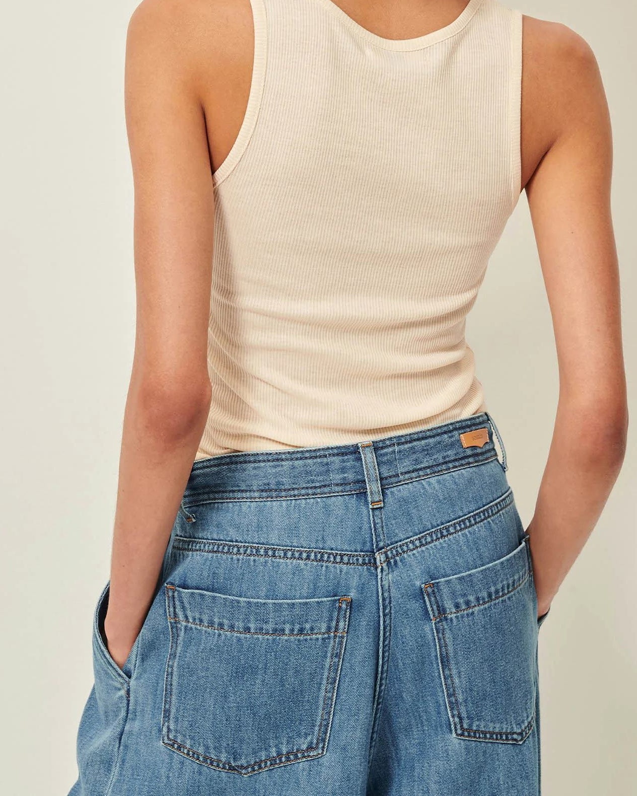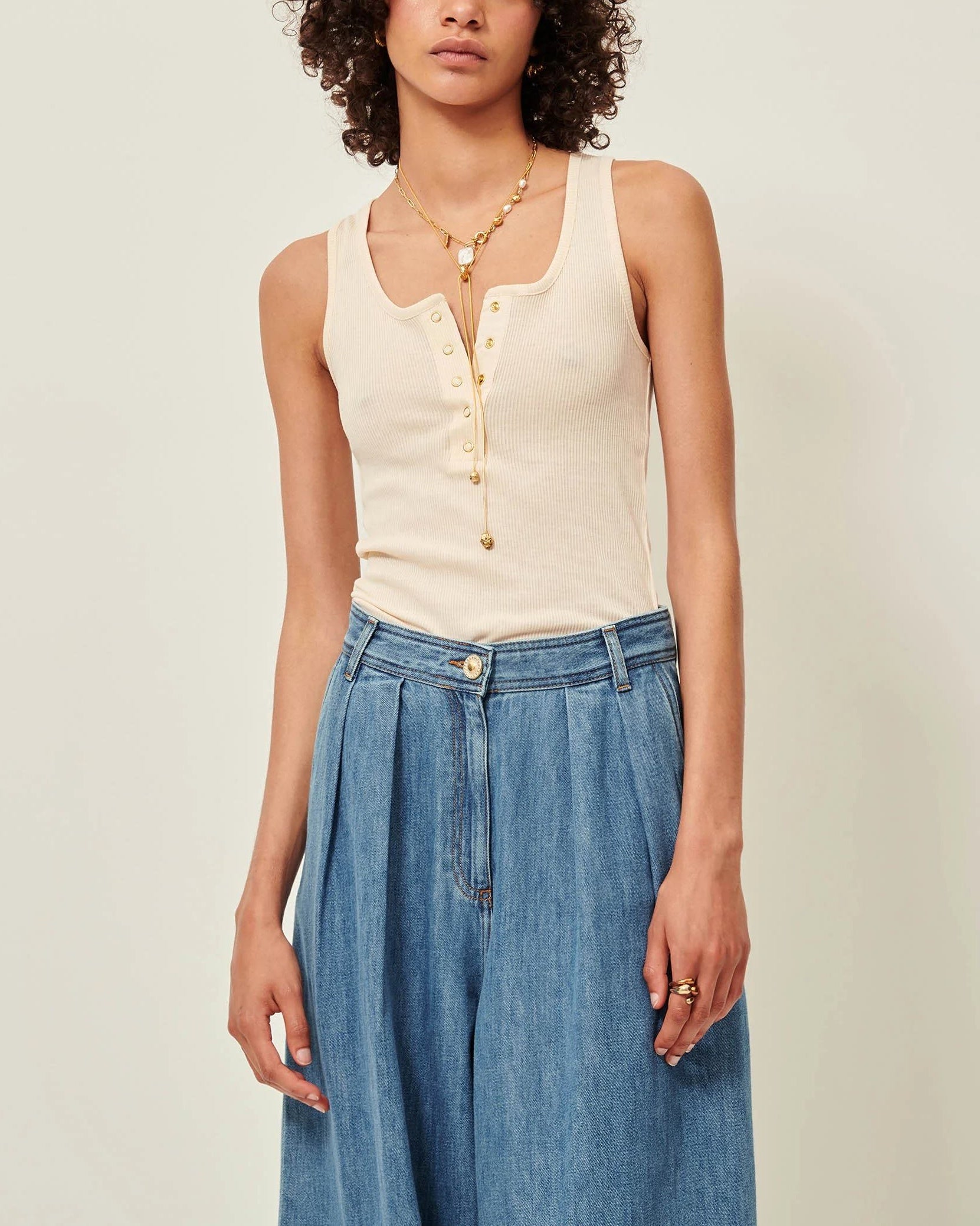 Fitted tank top in ribbed jersey, crafted in Portugal, with a poplin button placket.{CR}{LF}{CR}{LF}This product is made from TENCEL™ Lyocell, fibres from certified, sustainably managed renewable wood sources using a process that limits pollution and toxic discharges. TENCEL™ is a registered trademark of Lenzing AG.