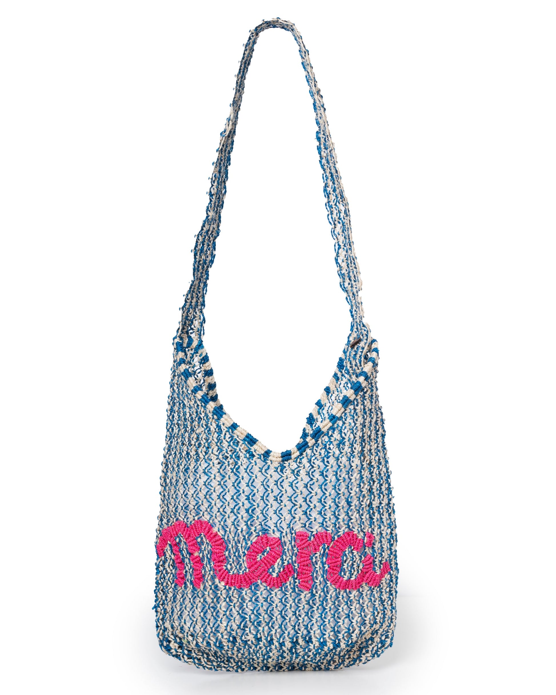 • Colorway: Natural raffia complemented by cobalt blue highlights