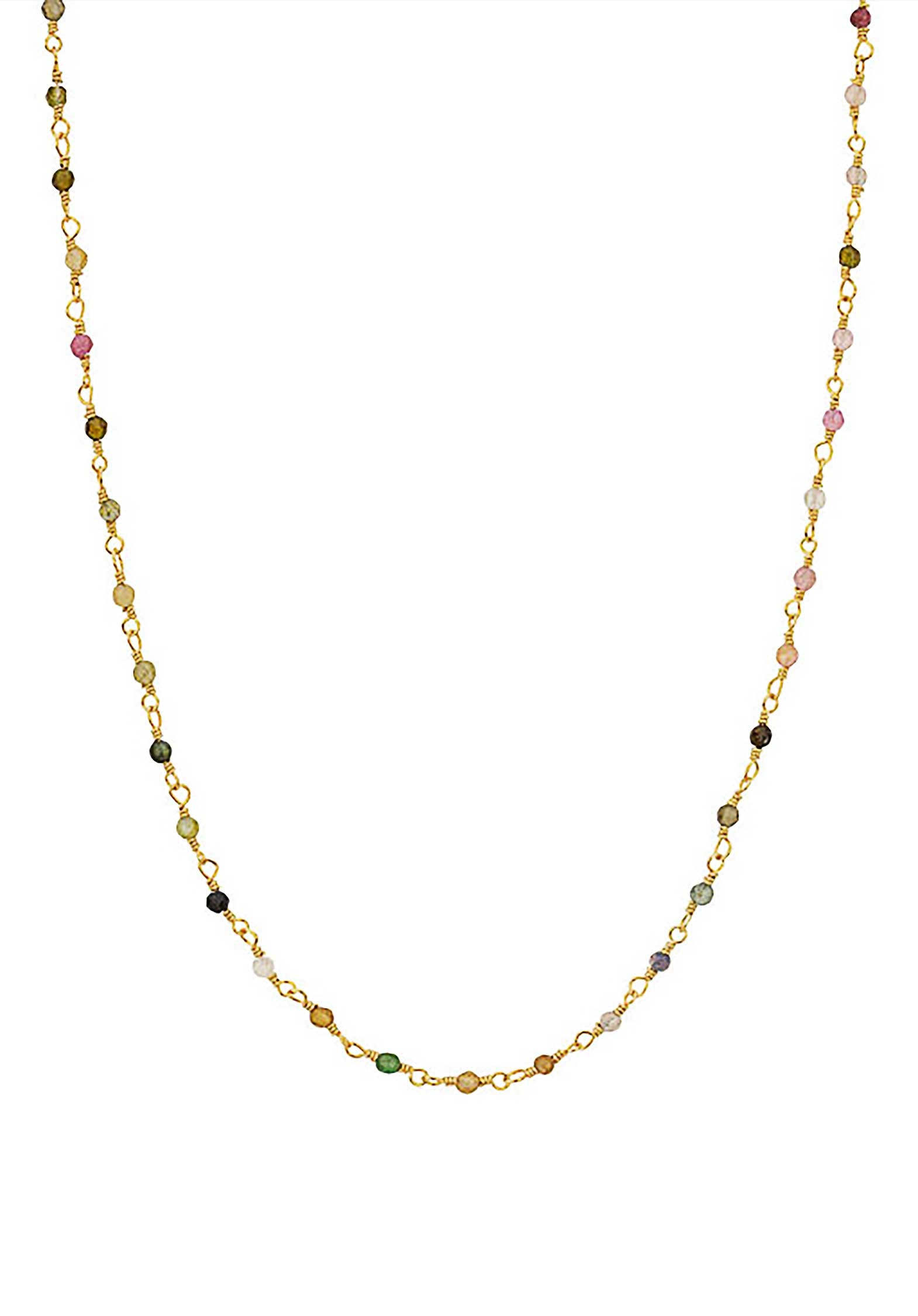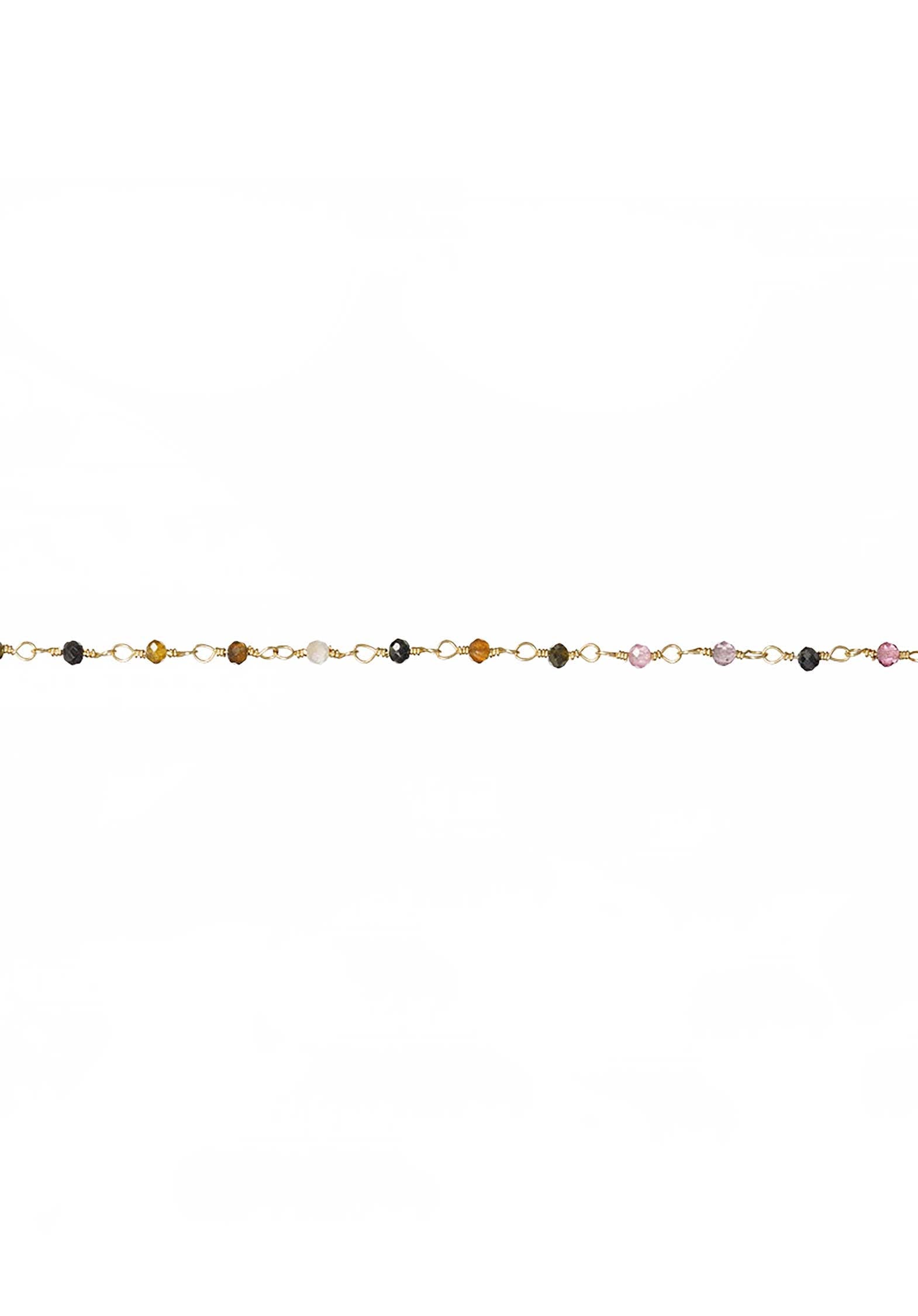 This UNE A UNE 18K Gold Plated Turmalina Bracelet brings fine metals and beautiful stones to the forefront. The chain is adorned with turmalina stones. The bracelet can be worn on its own or layered with other pieces for a statement look.