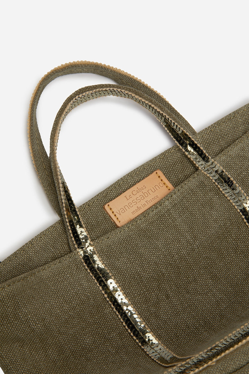 The bag has a label made of natural plant leather, hot stamped with Le Cabas Vanessa Bruno made in France.
